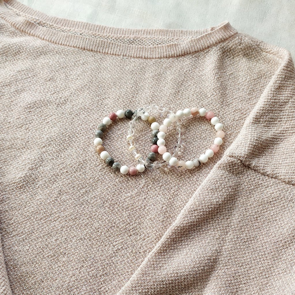 Náramek je navlečen na velmi pevné gumičce, takže se nemusíte trápit zapínáním