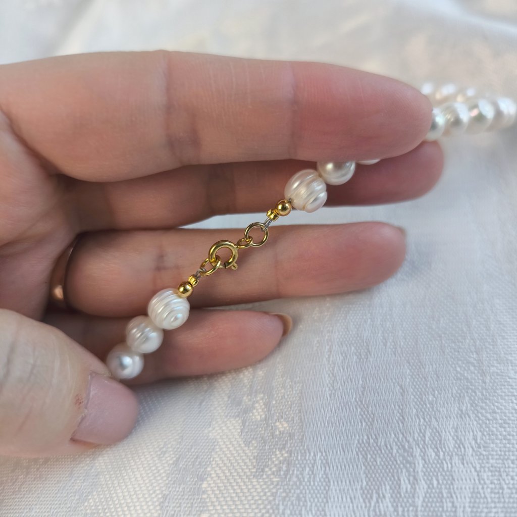Stříbrné zapínání pozlacené dodává náhrdelníku nádech luxusu a zajišťuje, že bude spolehlivě držet na svém místě po celý den. Představte si ten okamžik, kdy si perlový náhrdelník poprvé připnete kolem krku.