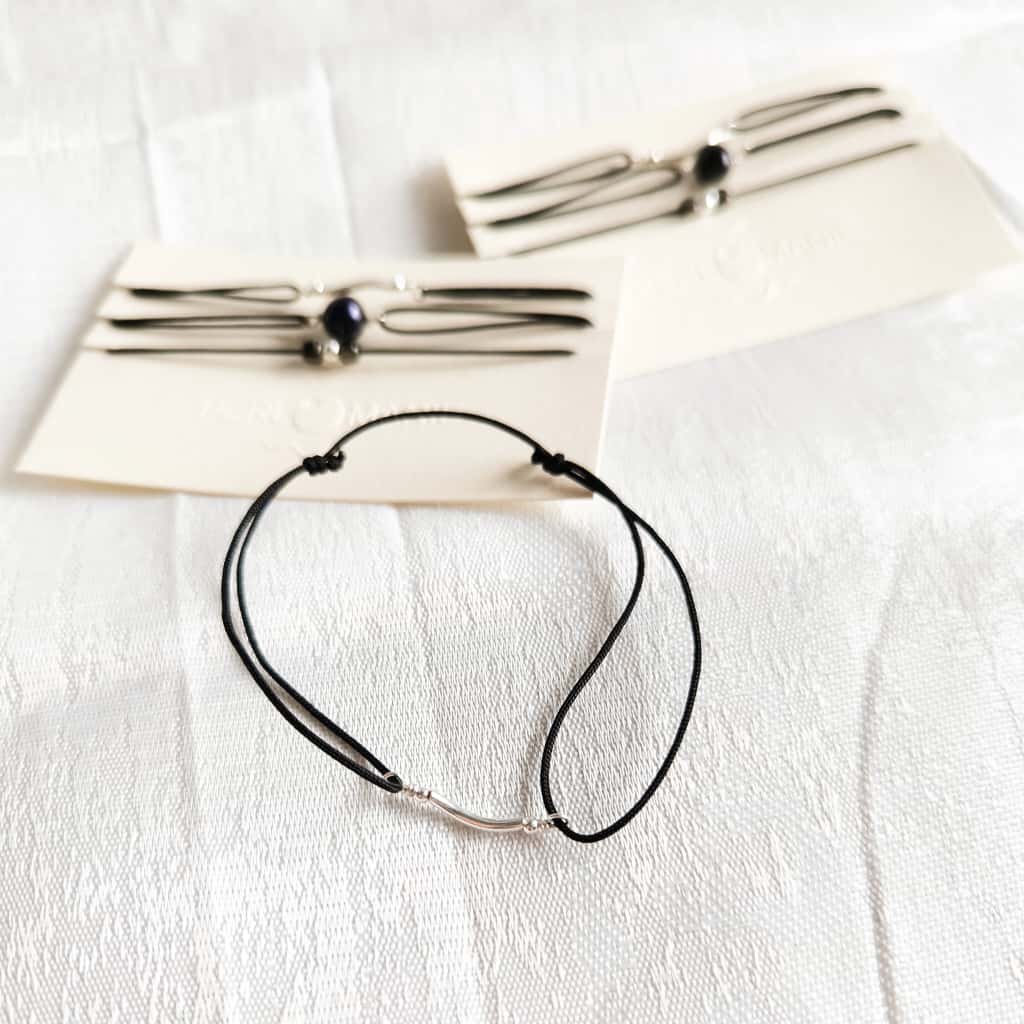 2) Provázkový náramek s tmavou sladkovodní perlou