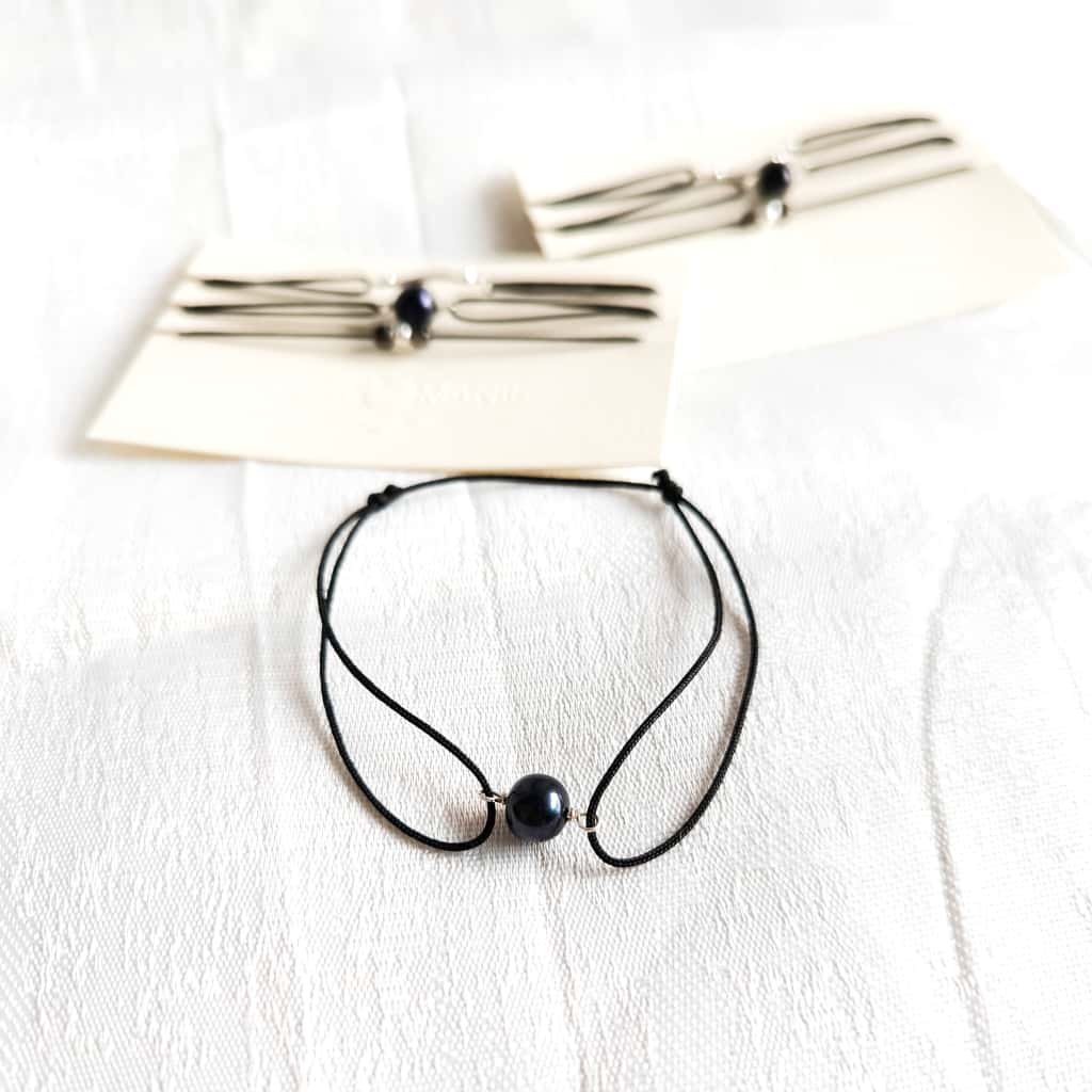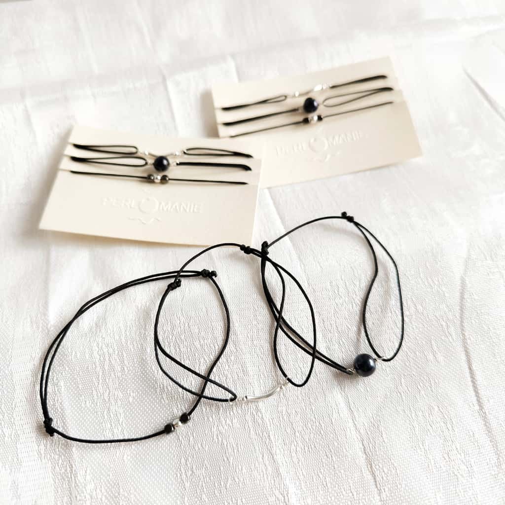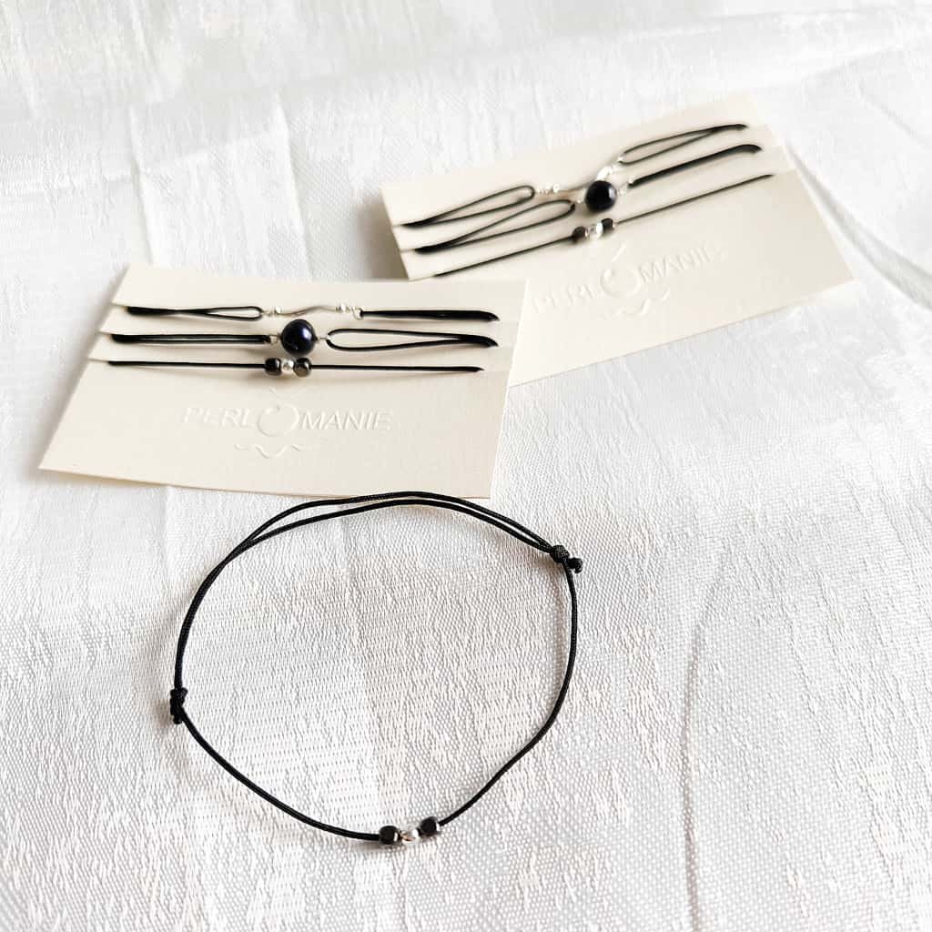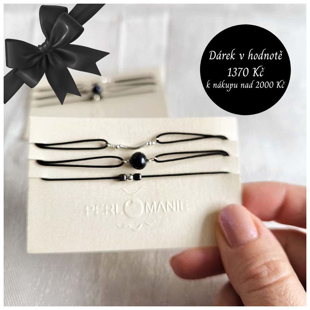 3 Provázkové stříbrné náramky, černá perla, dárek k objednávce BLACK FRIDAY