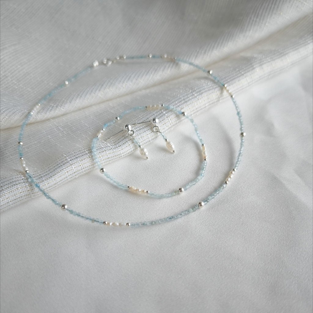 Topaz patří mezi vzácné polodrahokamy světa a jeho modré tóny okouzlují tím, jak se mění podle světla. V kombinaci s přirozeným leskem sladkovodních perel vzniká souprava šperků, která působí harmonicky a zároveň mimořádně luxusně.