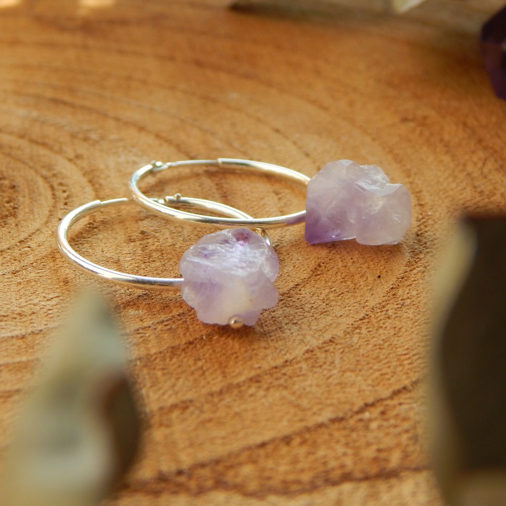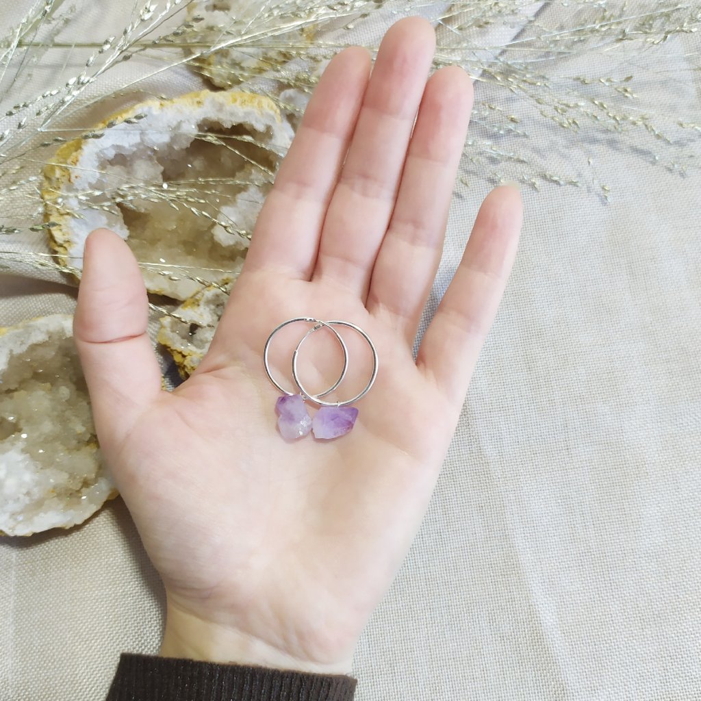 Náušnice jsou vyrobeny ze stříbra o ryzosti 925/1000 a osazeny surovým ametystem. Ametyst je kamenem duchovní čistoty a meditace, dodává rozhodnost a posiluje intuici.