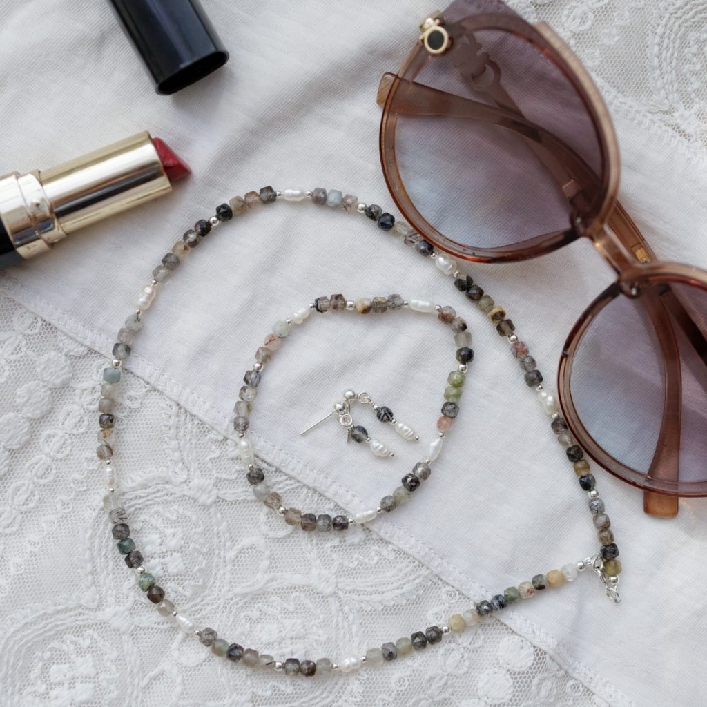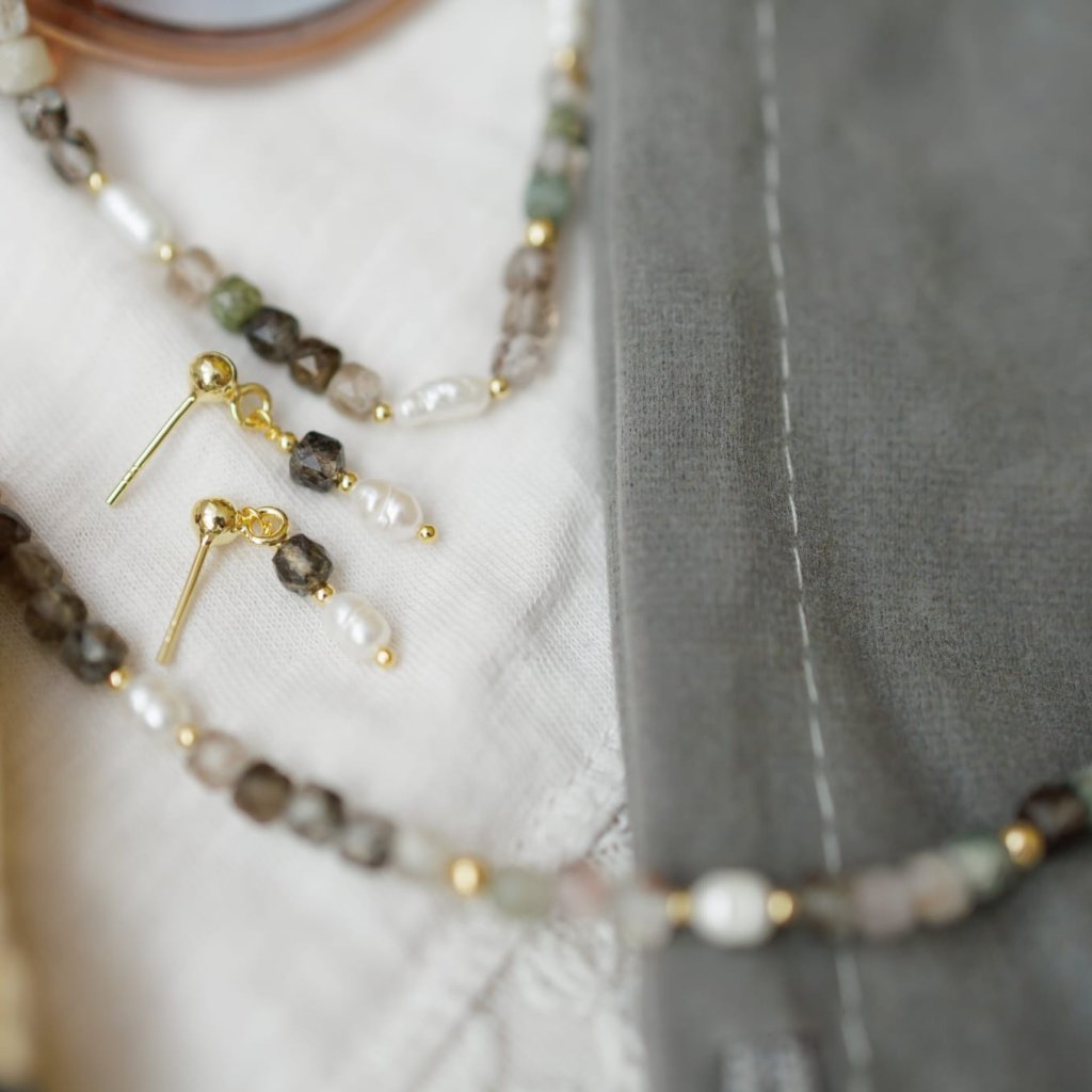 Protože jsou vyrobeny ze sladkovodních kultivovaných perel, mohou mít drobné nepravidelnosti – to je znamení, že na sobě nosíte kus přírody. Barvy minerálů i perel se mohou jemně lišit podle světelných podmínek a nastavení monitoru.