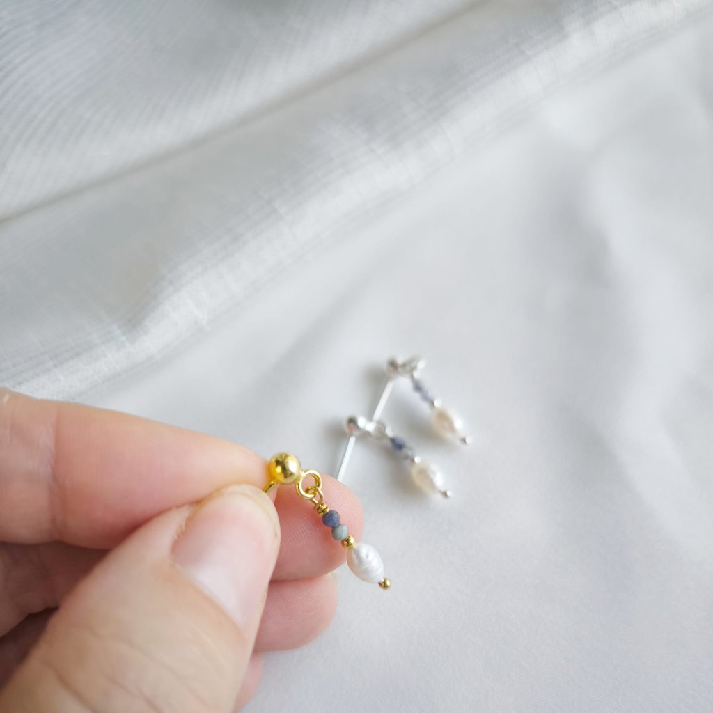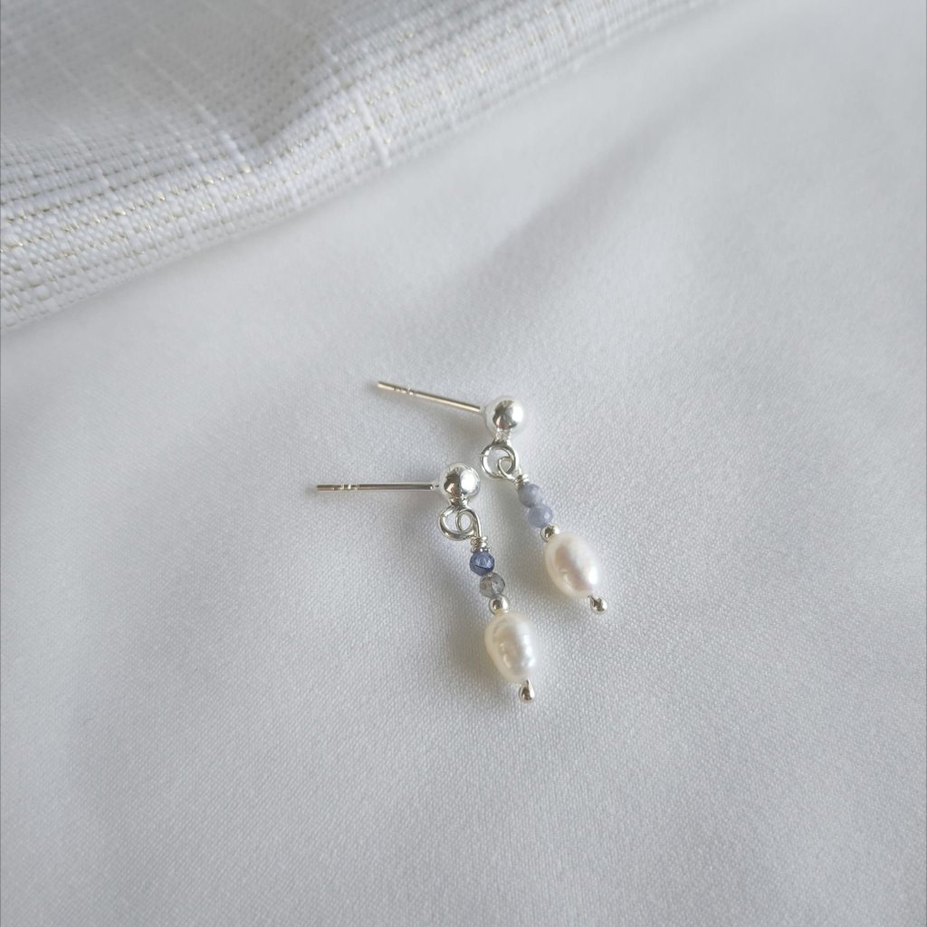 Tyto jemné náušnice propojují třpyt vzácného tanzanitu a nadčasovou krásu perel. Základ náušnic tvoří stříbrný puzetkový náušnicový díl, z něhož se elegantně spouští přívěsek s mini broušenými 2 mm kamínky tanzanitu a sladkovodní perlou. Jejich jemně modrofialový nádech se rozzáří při každém pohybu.