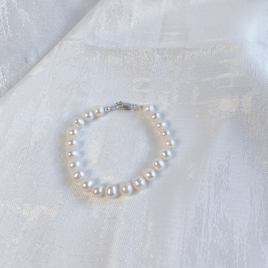Jemný náramek ze středně velkých bílých polokulatých perel se hodí pro každodenní nošení. Tento stříbrný perlový náramek jsme vyrobili ze sladkovodních bílých perel a doplnili ho zapínáním ze stříbra o ryzosti 925/1000.