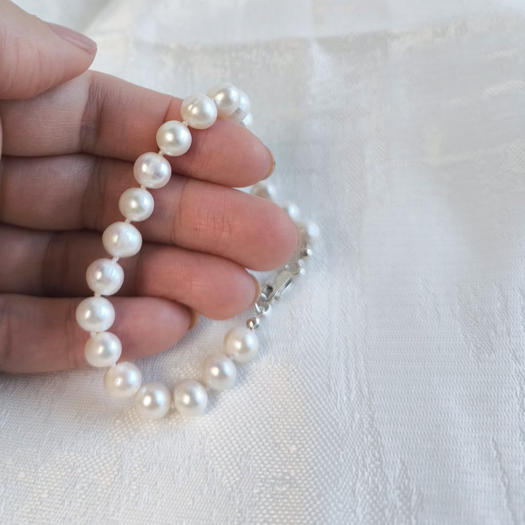Náramek je uzlíkovaný, což znamená, že mezi každou perlou je šperkařský uzlík. Díky tomu se perly mezi sebou neodírají a perlový náramek vypadá ještě elegantněji.