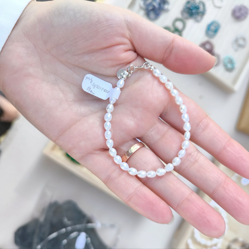 Jemný náramek z malých rýžových bílých perel se hodí pro každodenní nošení. Tento stříbrný perlový náramek jsme vyrobili ze sladkovodních bílých perel a doplnili ho zapínáním ze stříbra o ryzosti 925/1000.