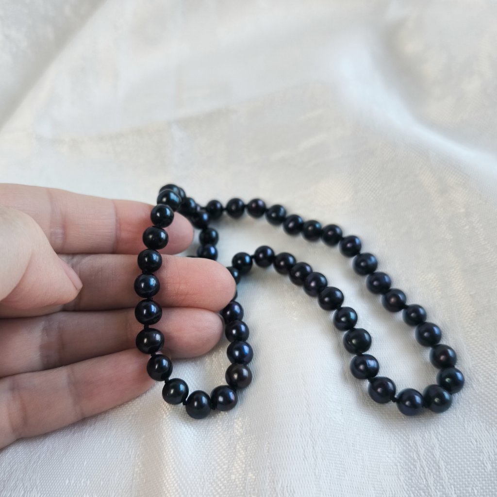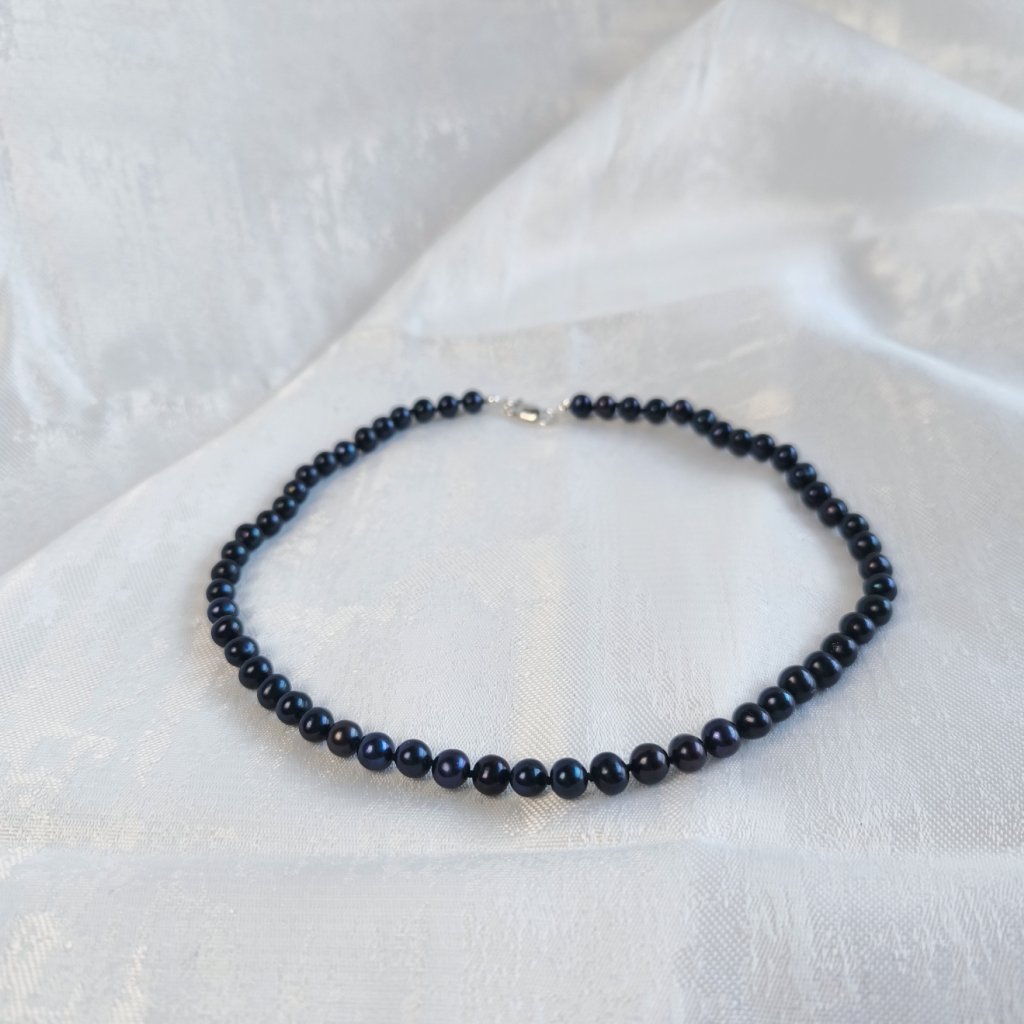 Stříbrný perlový náhrdelník černé perly AA