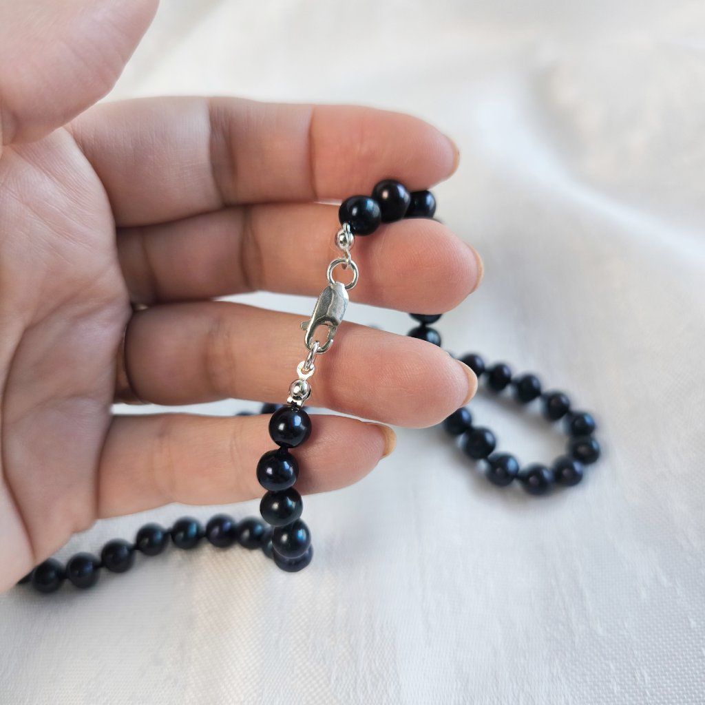 Stříbrné zapínání dodává náhrdelníku nádech luxusu a zajišťuje, že bude spolehlivě držet na svém místě po celý den. Představte si ten okamžik, kdy si perlový náhrdelník poprvé připnete kolem krku.