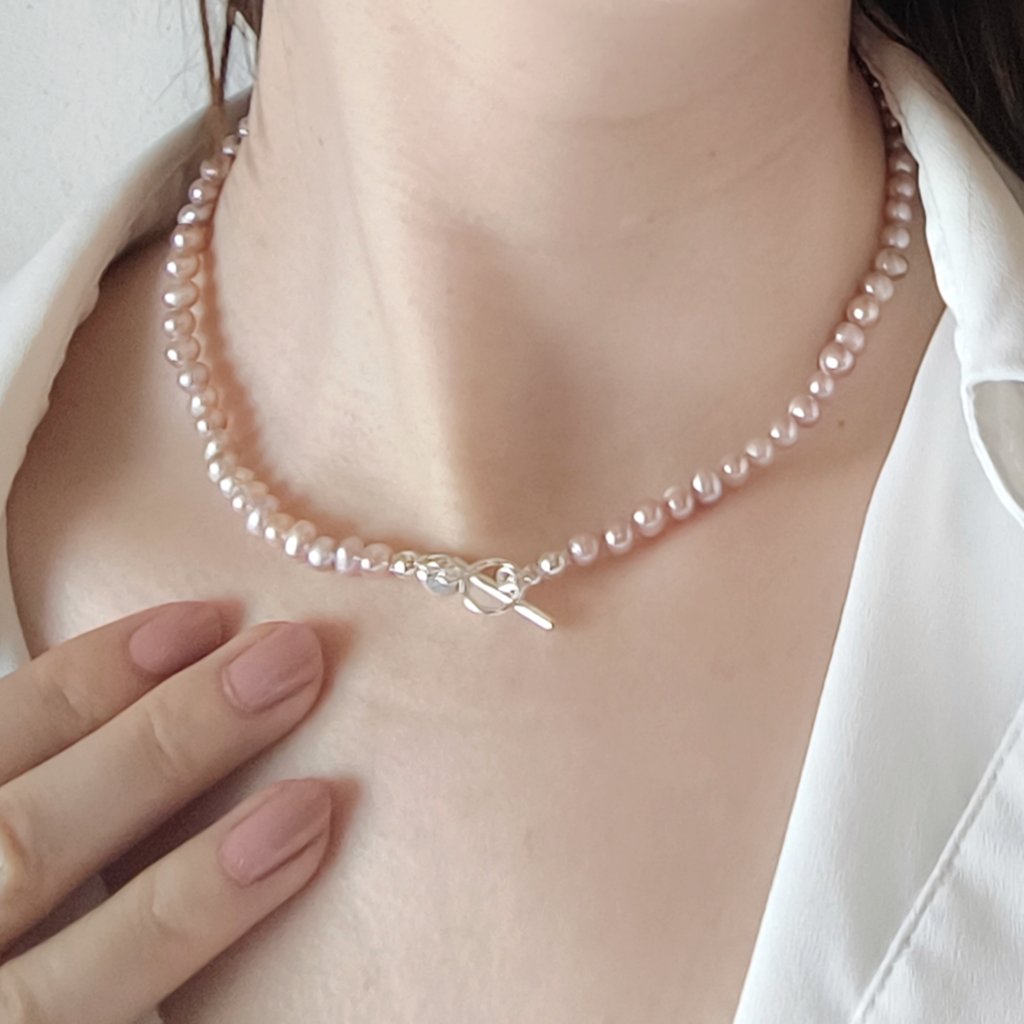 Stříbrný perlový náhrdelník choker malé růžové perly 5,5 mm AA