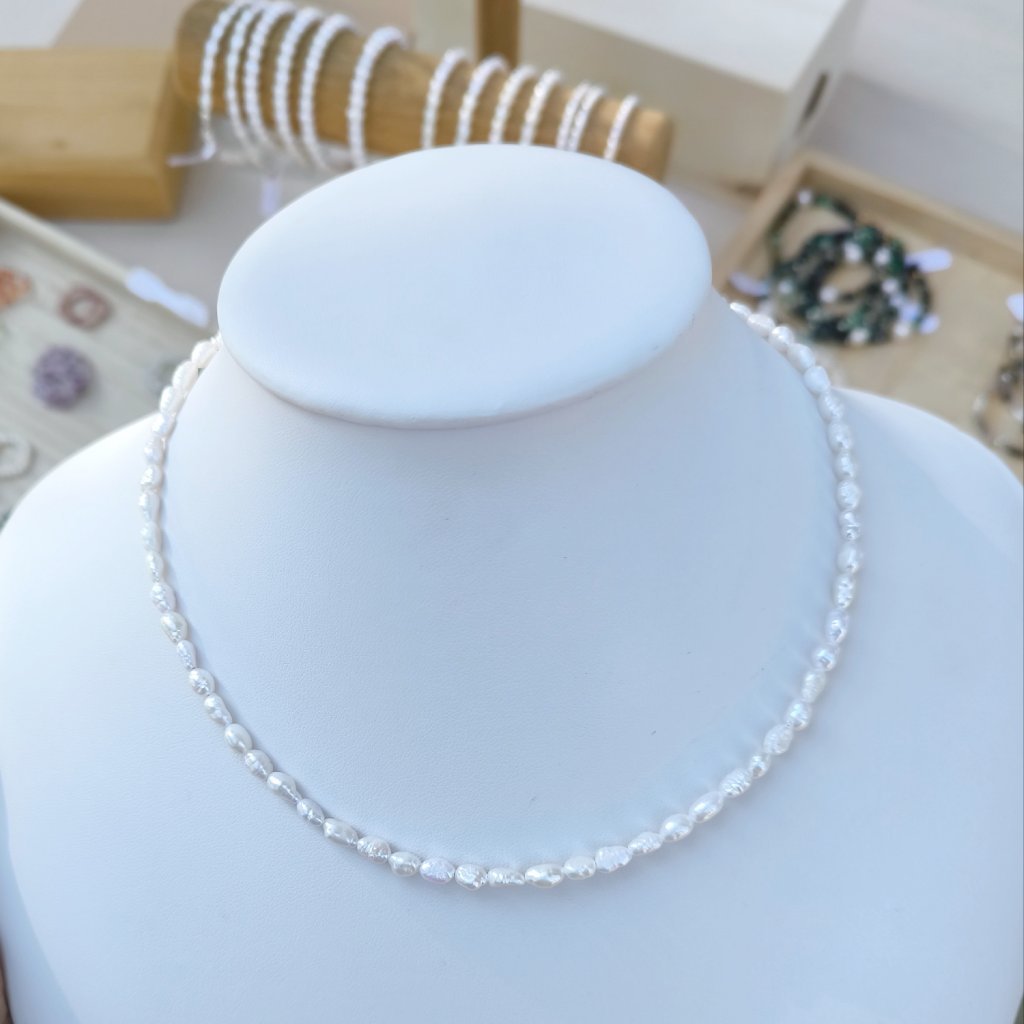Nadčasový, elegantní a ručně vyrobený, takový je náhrdelník z malých bílých oválných sladkovodních perel.