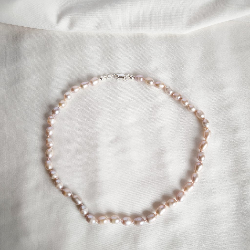 Stříbrný perlový náhrdelník oválné růžové perly AA
