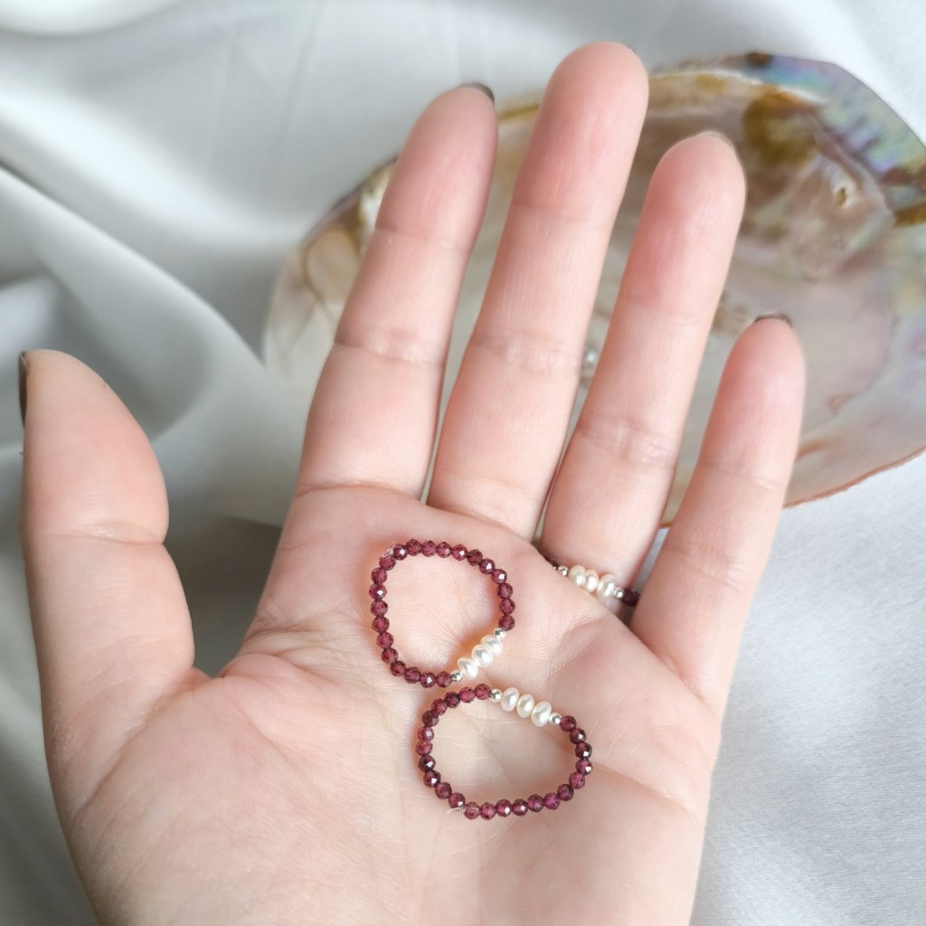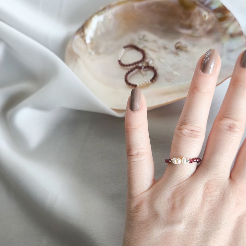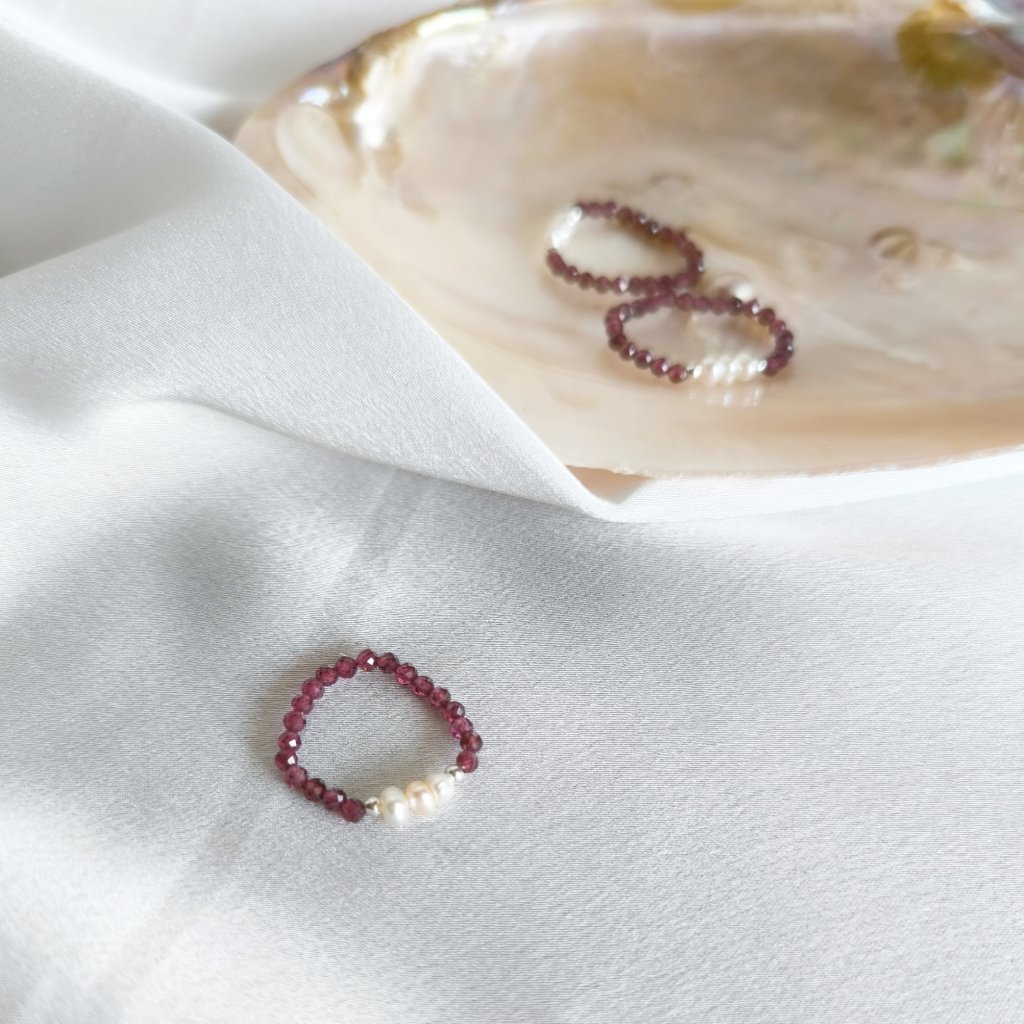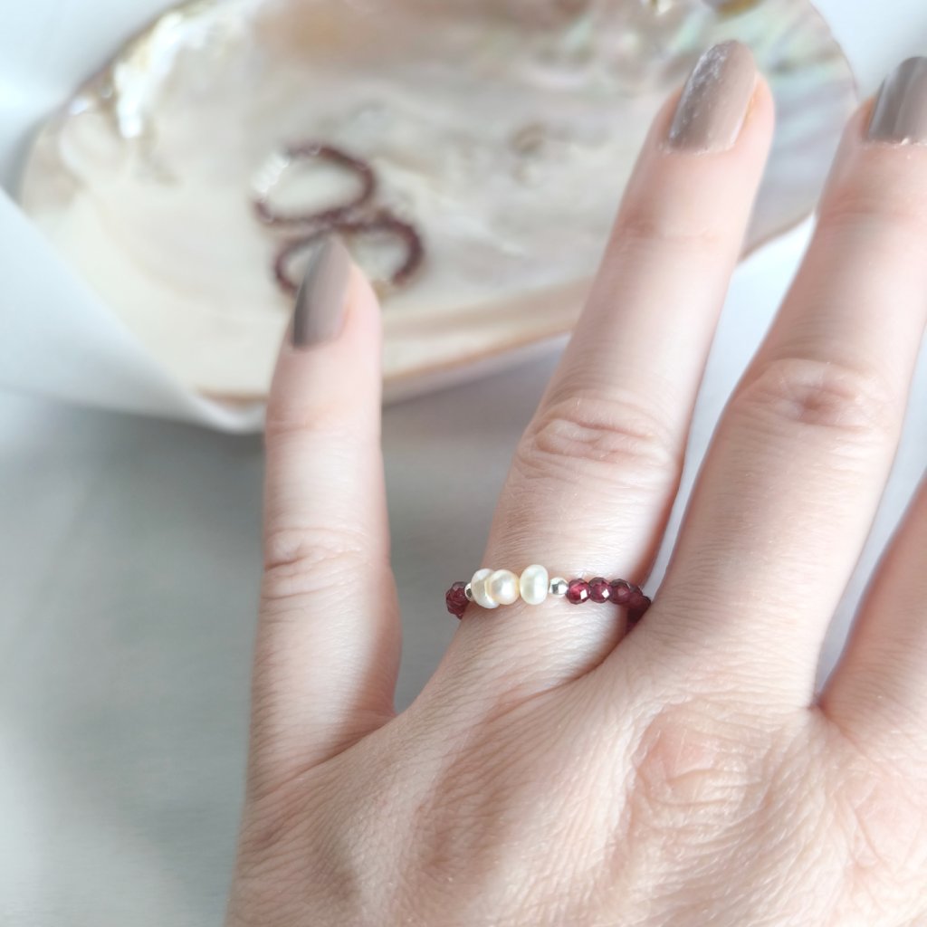 Tento prsten s granátem a bílými perlami jsme vytvořili právě pro takové chvíle.