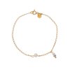 Minimalistický náramek zlacený žlutým zlatem s bílou perlou a přívěskem s bílou a šedou