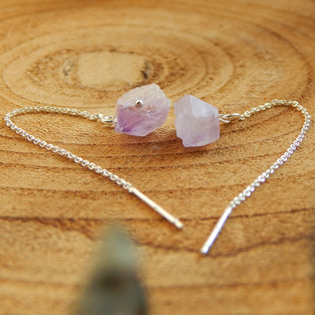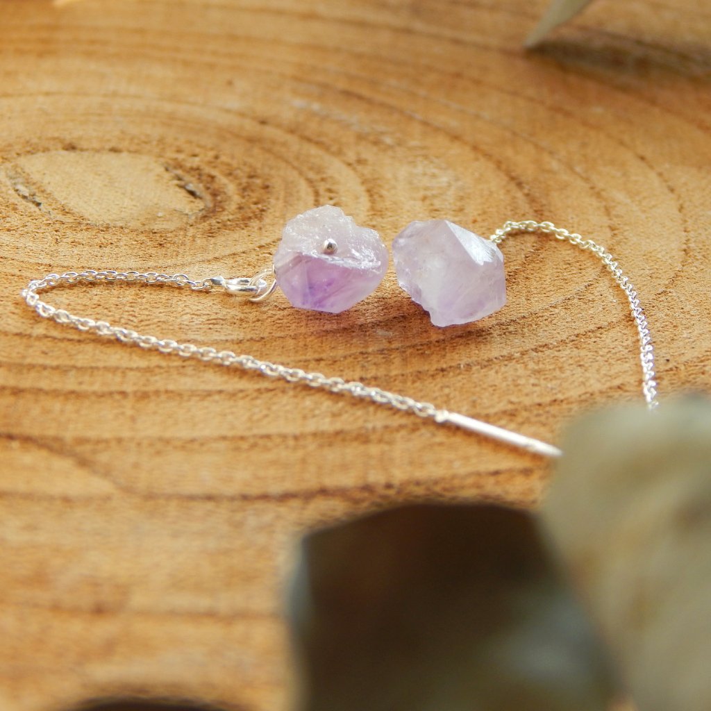 Náušnice jsou vyrobeny ze stříbra o ryzosti 925/1000 a osazeny surovým ametystem. Ametyst je kamenem duchovní čistoty a meditace, dodává rozhodnost a posiluje intuici.