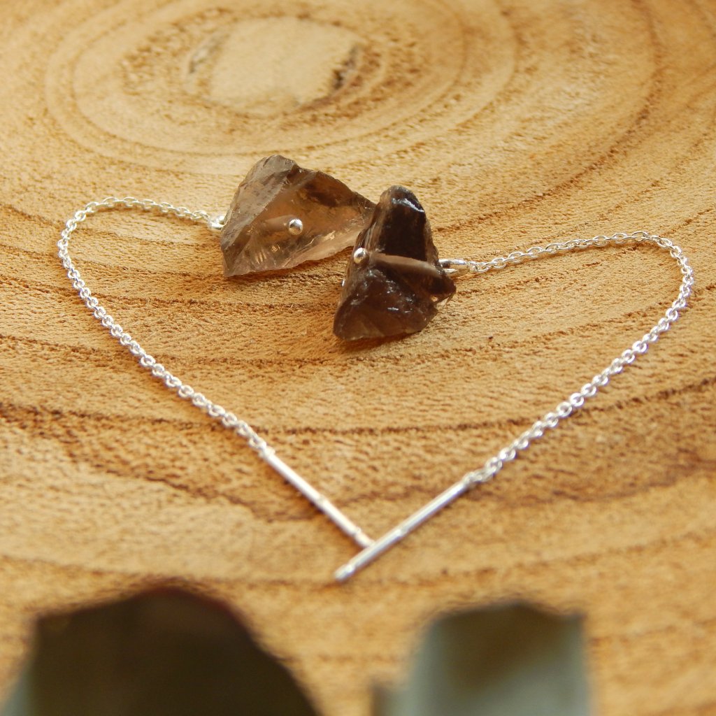 Náušnice jsou vyrobeny ze stříbra o ryzosti 925/1000 a osazeny surovou záhnědou. Záhněda dodává sílu při rozhodování, zahání strach a noční můry.