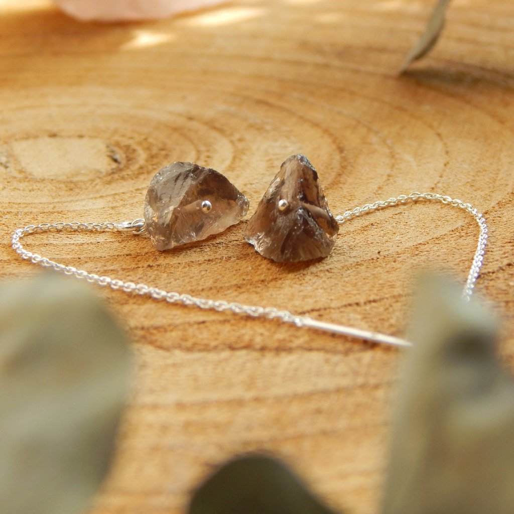 Náušnice jsou vyrobeny ze stříbra o ryzosti 925/1000 a osazeny surovou záhnědou. Záhněda dodává sílu při rozhodování, zahání strach a noční můry.