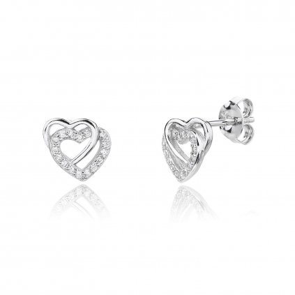 Stříbrné náušnice pecky na šroubek srdce s krystalem NS15003