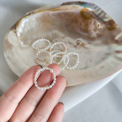 Prsten s perlami a měsíčním kamenem z minerálů PA80101